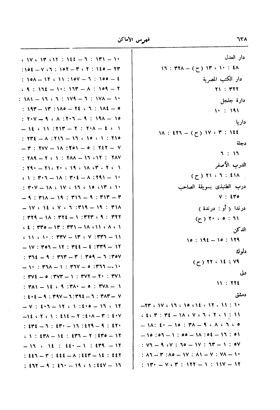 دمشق 10: 11، 12، 14، 15، 16، 17، 23- 11: 1، 2، 6، 7، 18- 34: 3، 4، 5، 6، 8، 9- 38: 15- 40: 18- 51: 16- 54: 18- 55: 1- 56: 15- 57: 1- 63: 17- 65: 7، 9- 76: