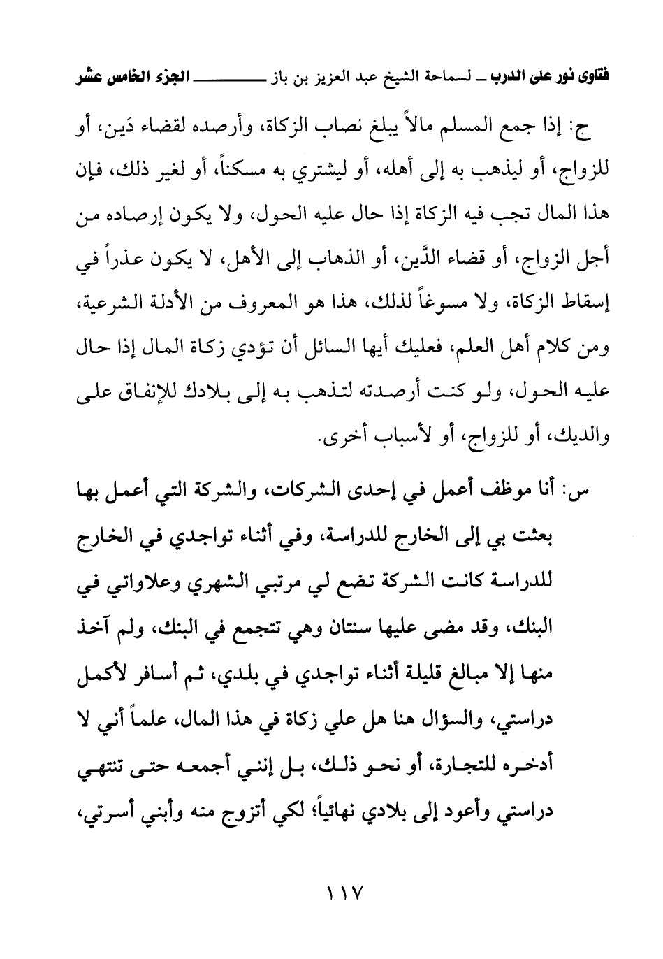 كتاب فتاوى نور على الدرب لابن باز بعناية الشويعر (اسم الجزء: 15)