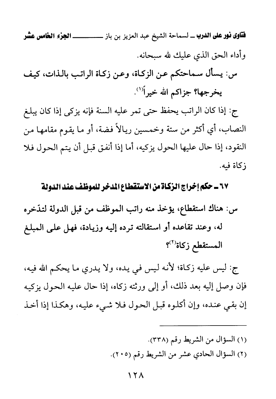 67 - حكم إخراج الزكاة من الاستقطاع المدخر للموظف عند الدولة