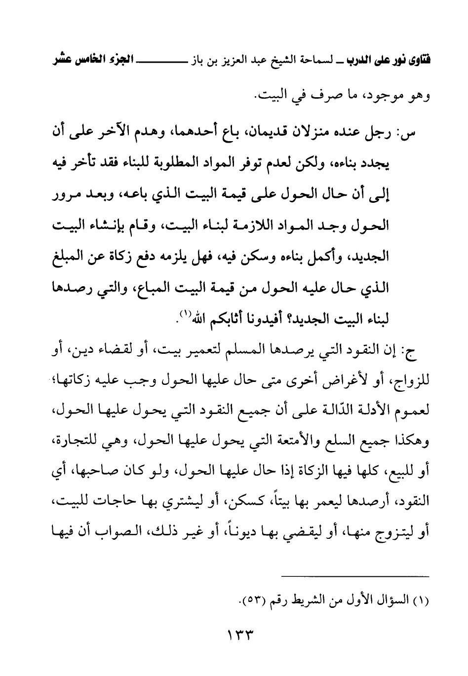 كتاب فتاوى نور على الدرب لابن باز بعناية الشويعر (اسم الجزء: 15)