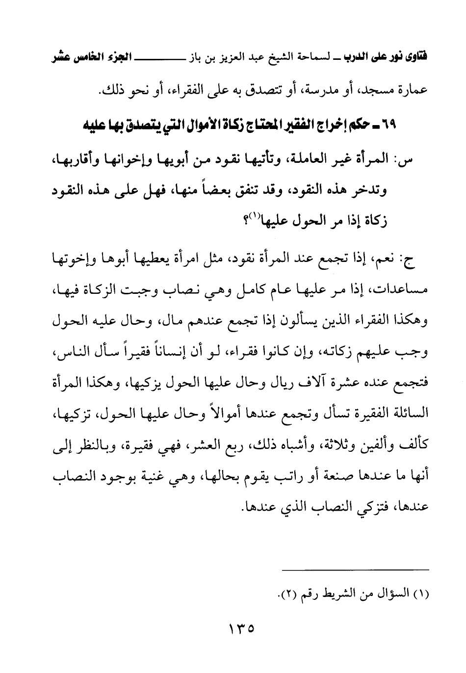 69 - حكم إخراج الفقير المحتاج زكاة الأموال التي يتصدق بها عليه