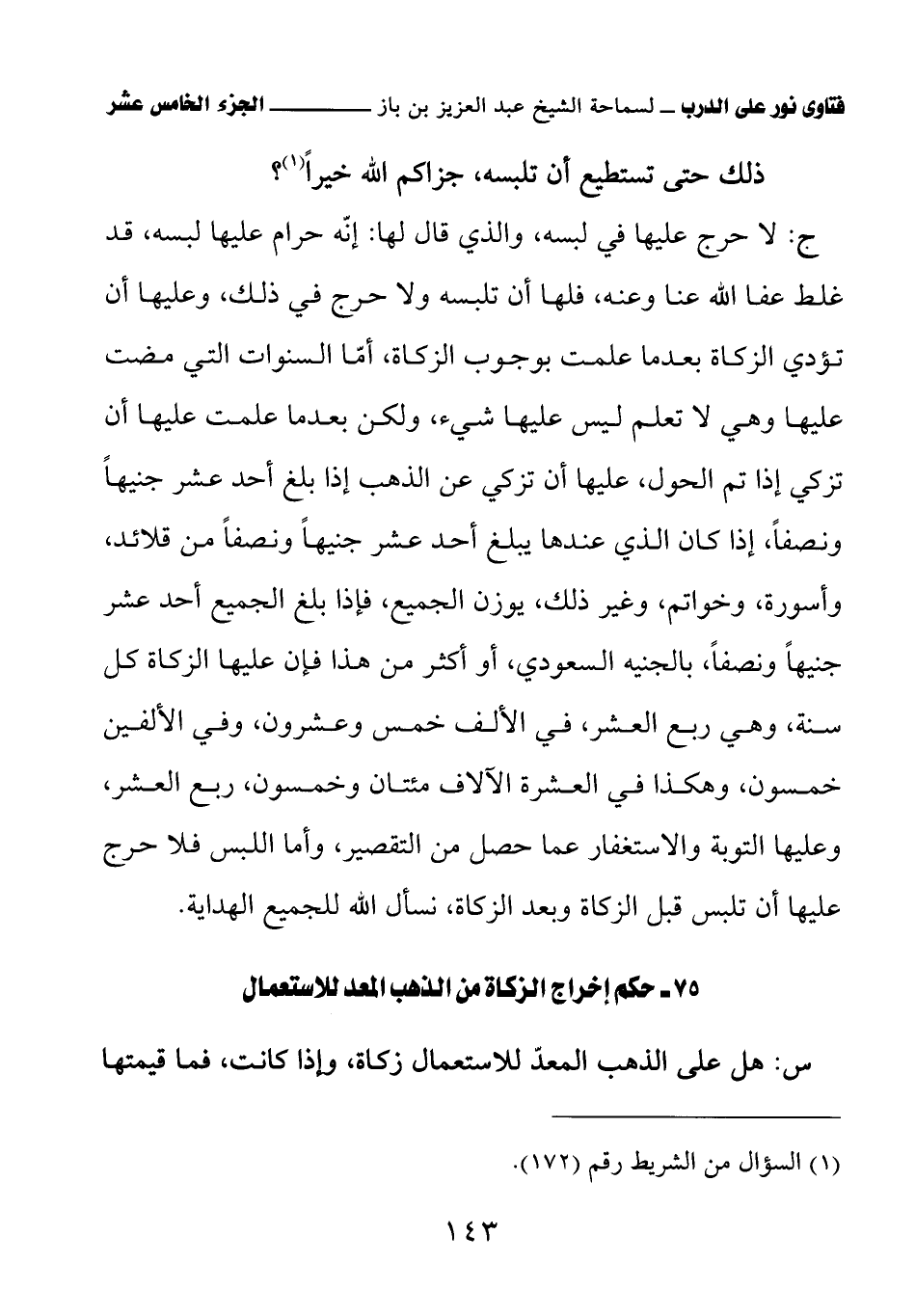 75 - حكم إخراج الزكاة من الذهب المعد للاستعمال