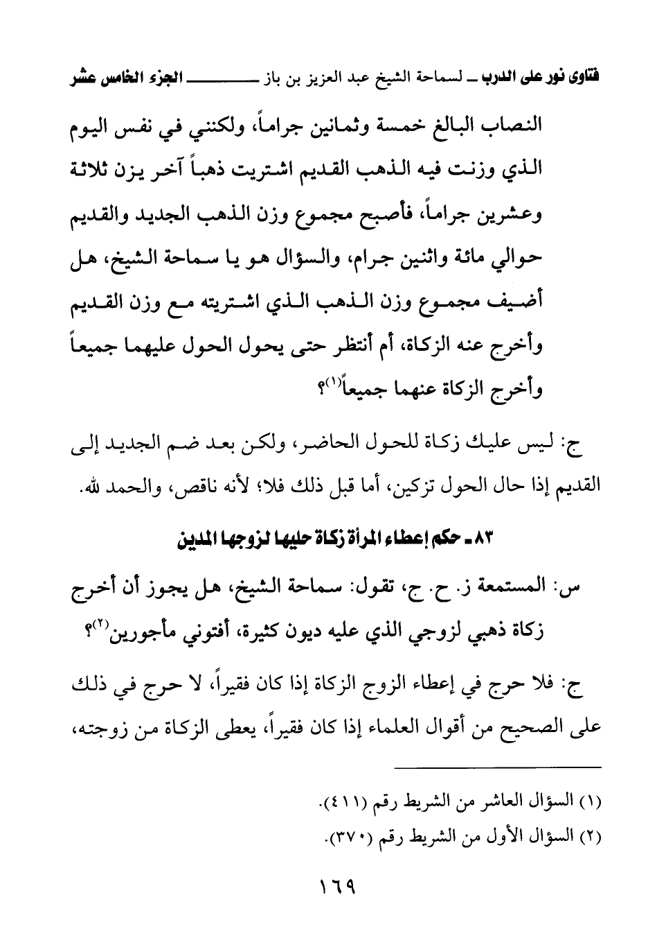 كتاب فتاوى نور على الدرب لابن باز بعناية الشويعر (اسم الجزء: 15)