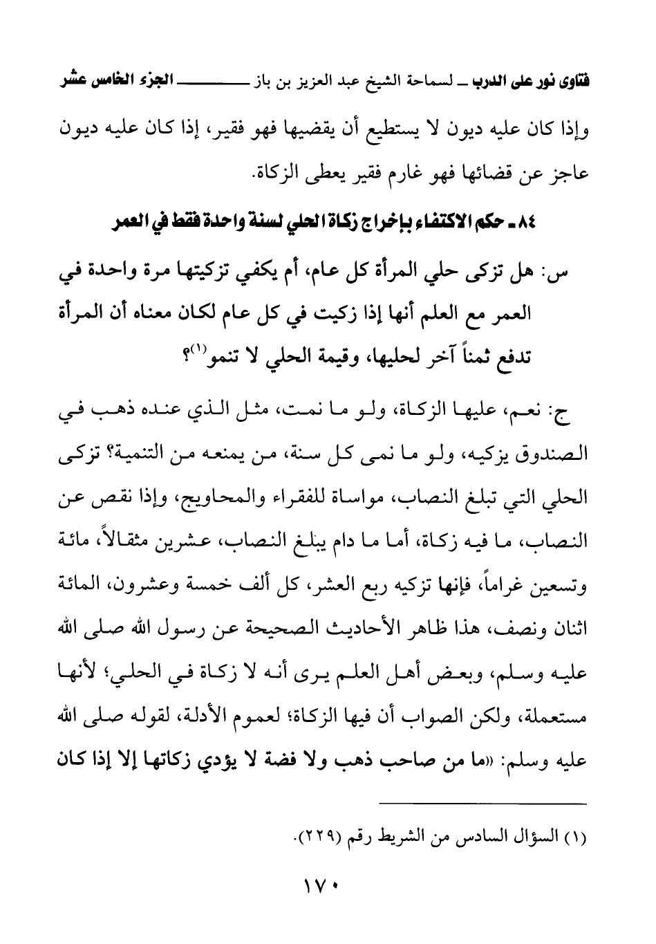 84 - حكم الاكتفاء بإخراج زكاة الحلي لسنة واحدة فقط في العمر