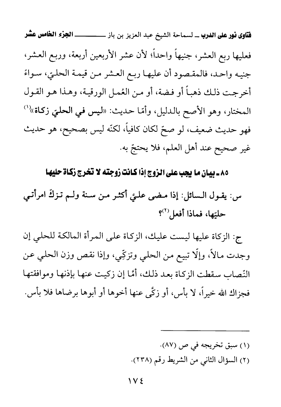 كتاب فتاوى نور على الدرب لابن باز بعناية الشويعر (اسم الجزء: 15)