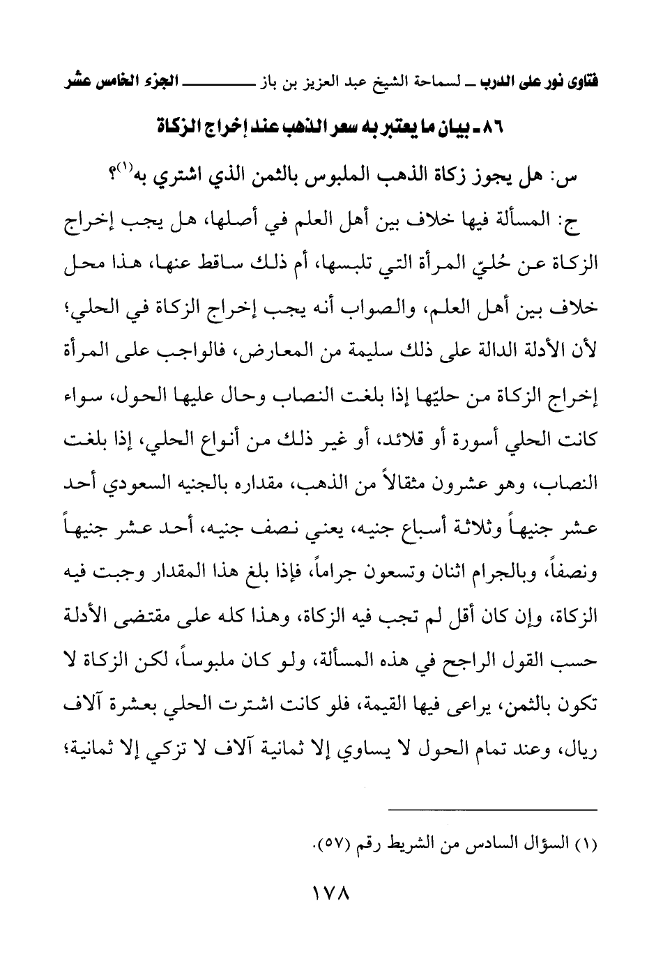 86 - بيان ما يعتبر به سعر الذهب عند إخراج الزكاة