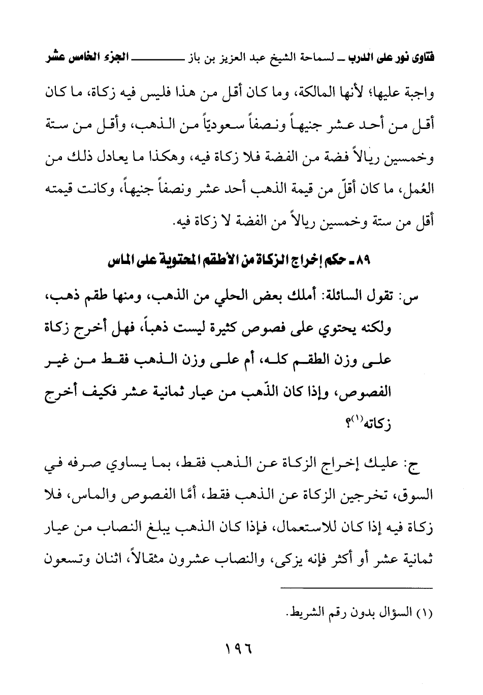 كتاب فتاوى نور على الدرب لابن باز بعناية الشويعر (اسم الجزء: 15)