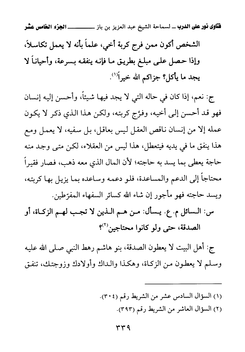 كتاب فتاوى نور على الدرب لابن باز بعناية الشويعر (اسم الجزء: 15)