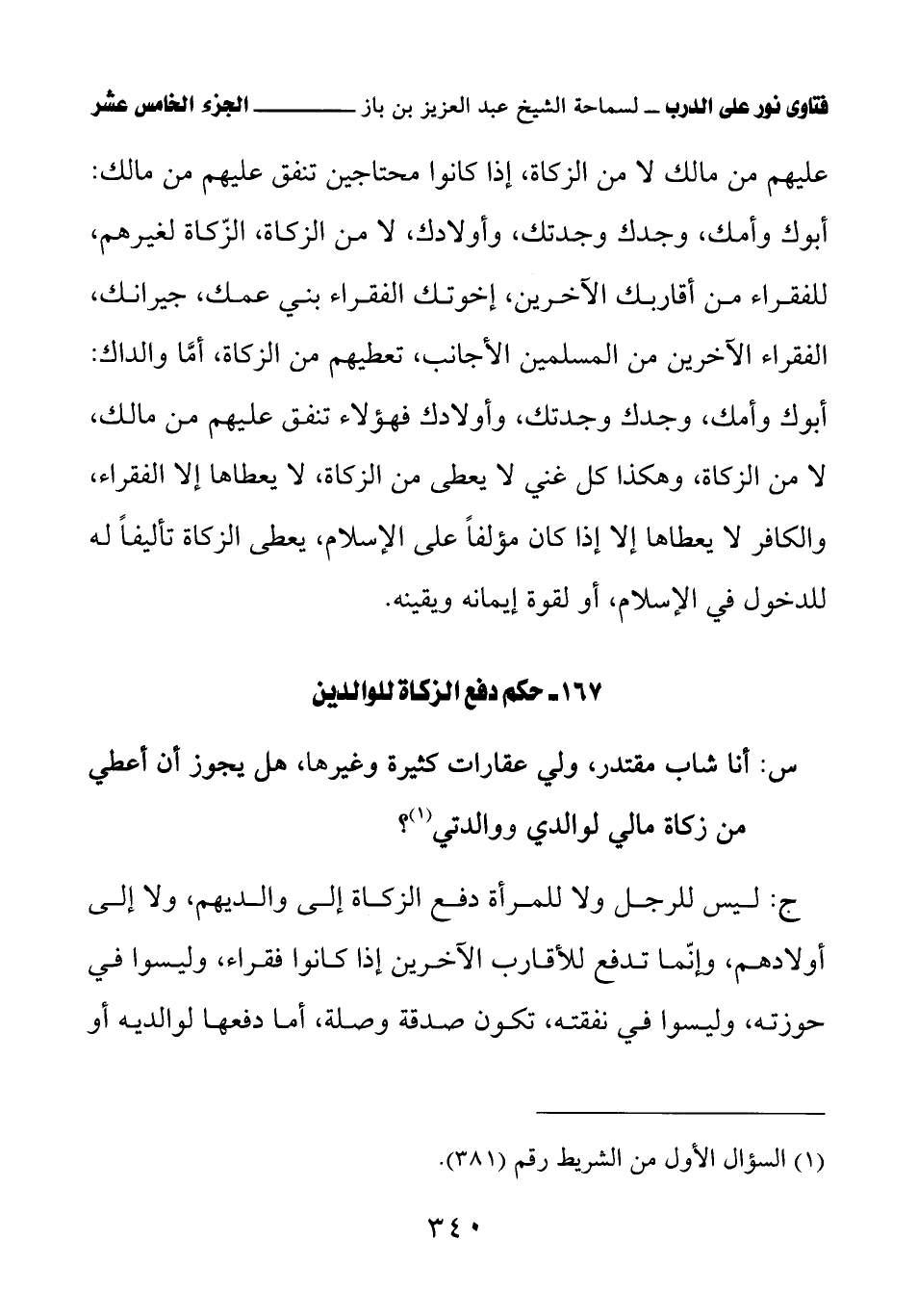 167 - حكم دفع الزكاة للوالدين