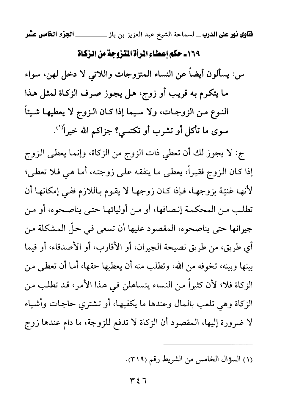 كتاب فتاوى نور على الدرب لابن باز بعناية الشويعر (اسم الجزء: 15)