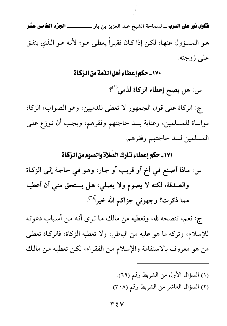 170 - حكم إعطاء أهل الذمة من الزكاة