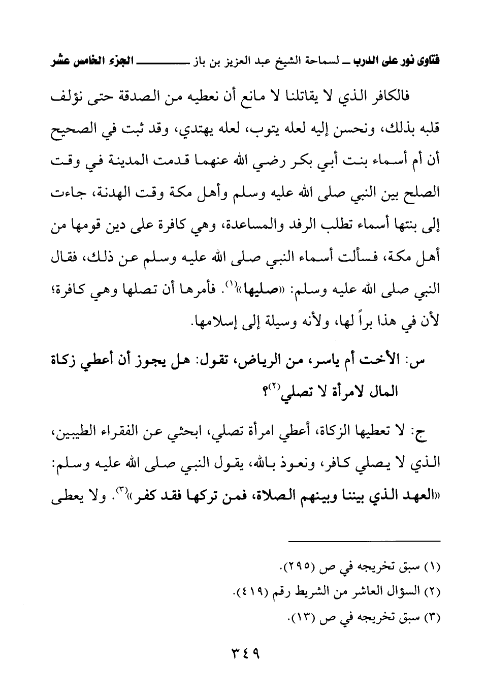 كتاب فتاوى نور على الدرب لابن باز بعناية الشويعر (اسم الجزء: 15)