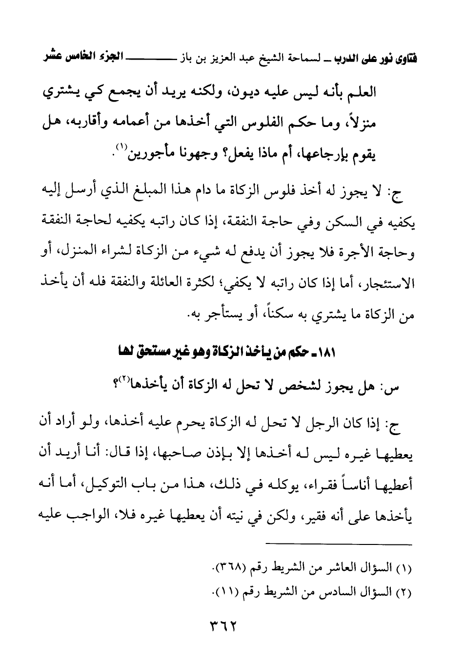 كتاب فتاوى نور على الدرب لابن باز بعناية الشويعر (اسم الجزء: 15)