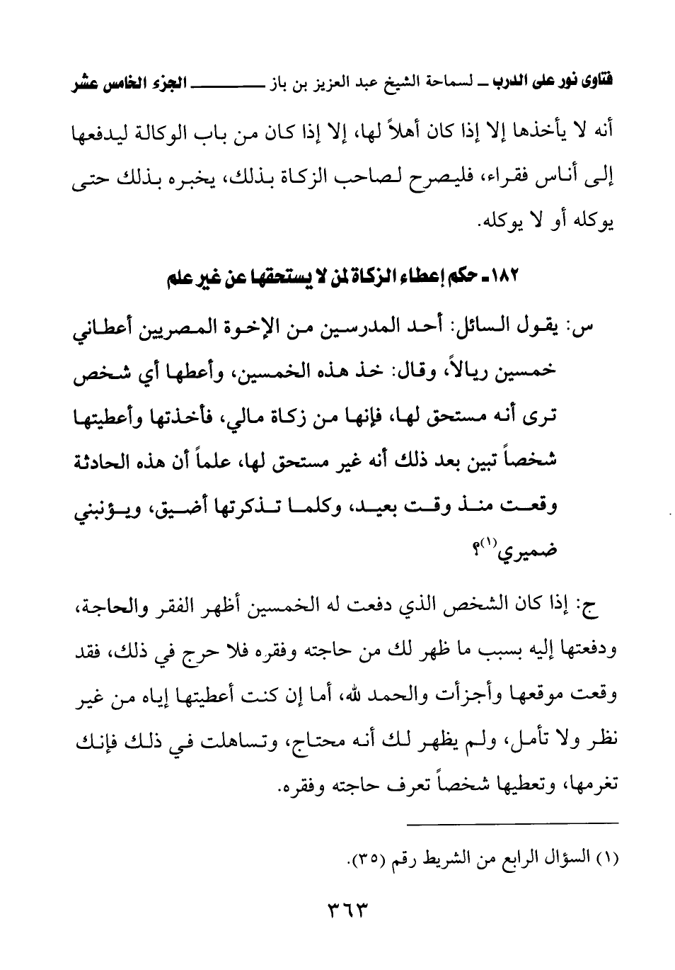 182 - حكم إعطاء الزكاة لمن لا يستحقها عن غير علم