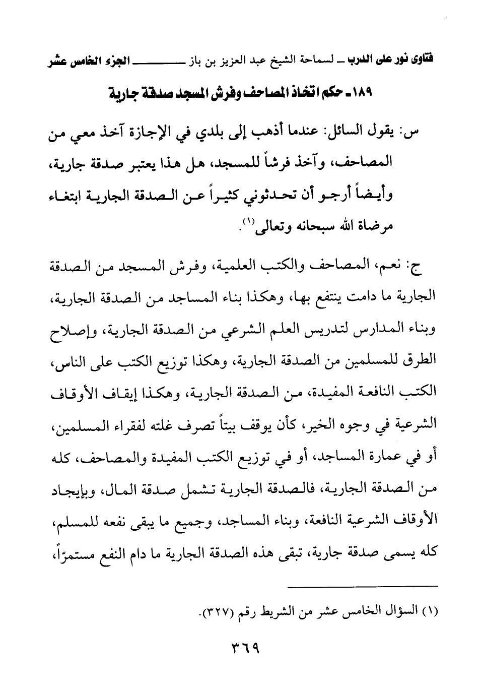 189 - حكم اتخاذ المصاحف وفرش المسجد صدقة جارية