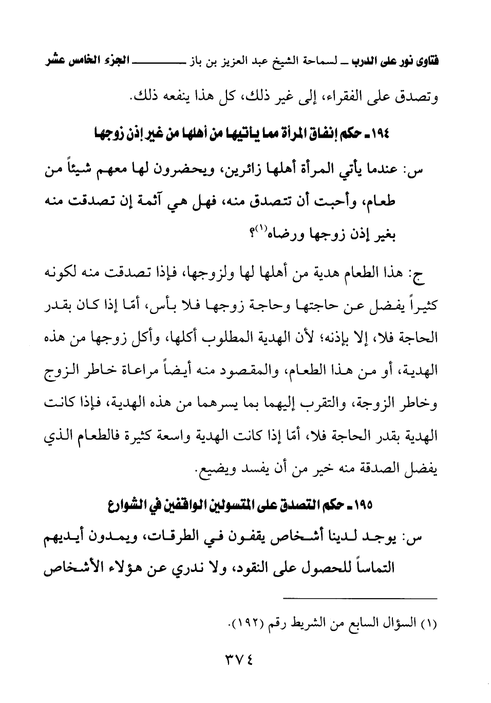 كتاب فتاوى نور على الدرب لابن باز بعناية الشويعر (اسم الجزء: 15)