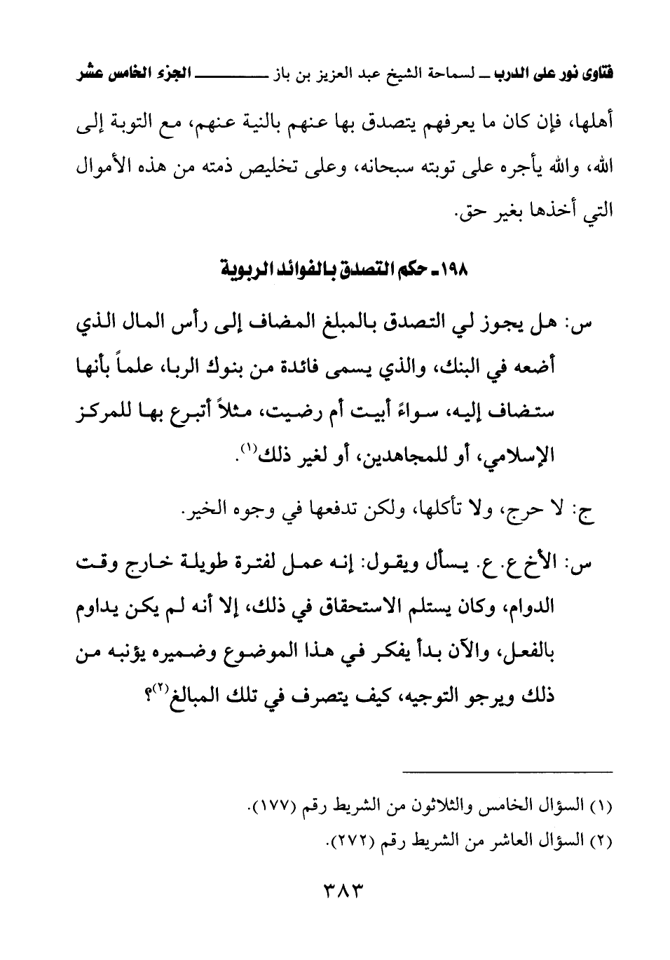 198 - حكم التصدق بالفوائد الربوية