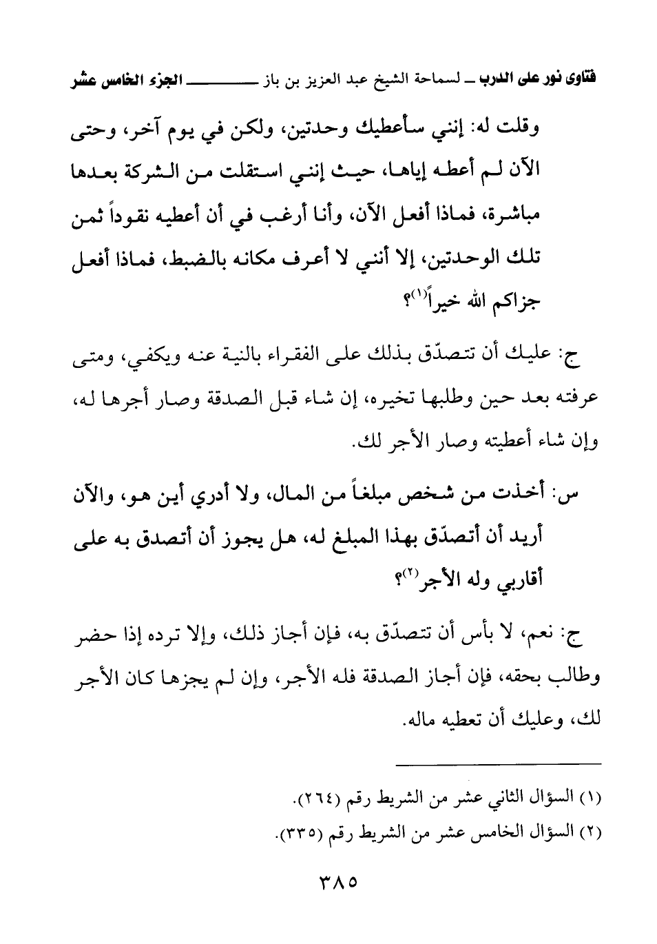 (¬1) السؤال الثاني عشر من الشريط رقم (264).