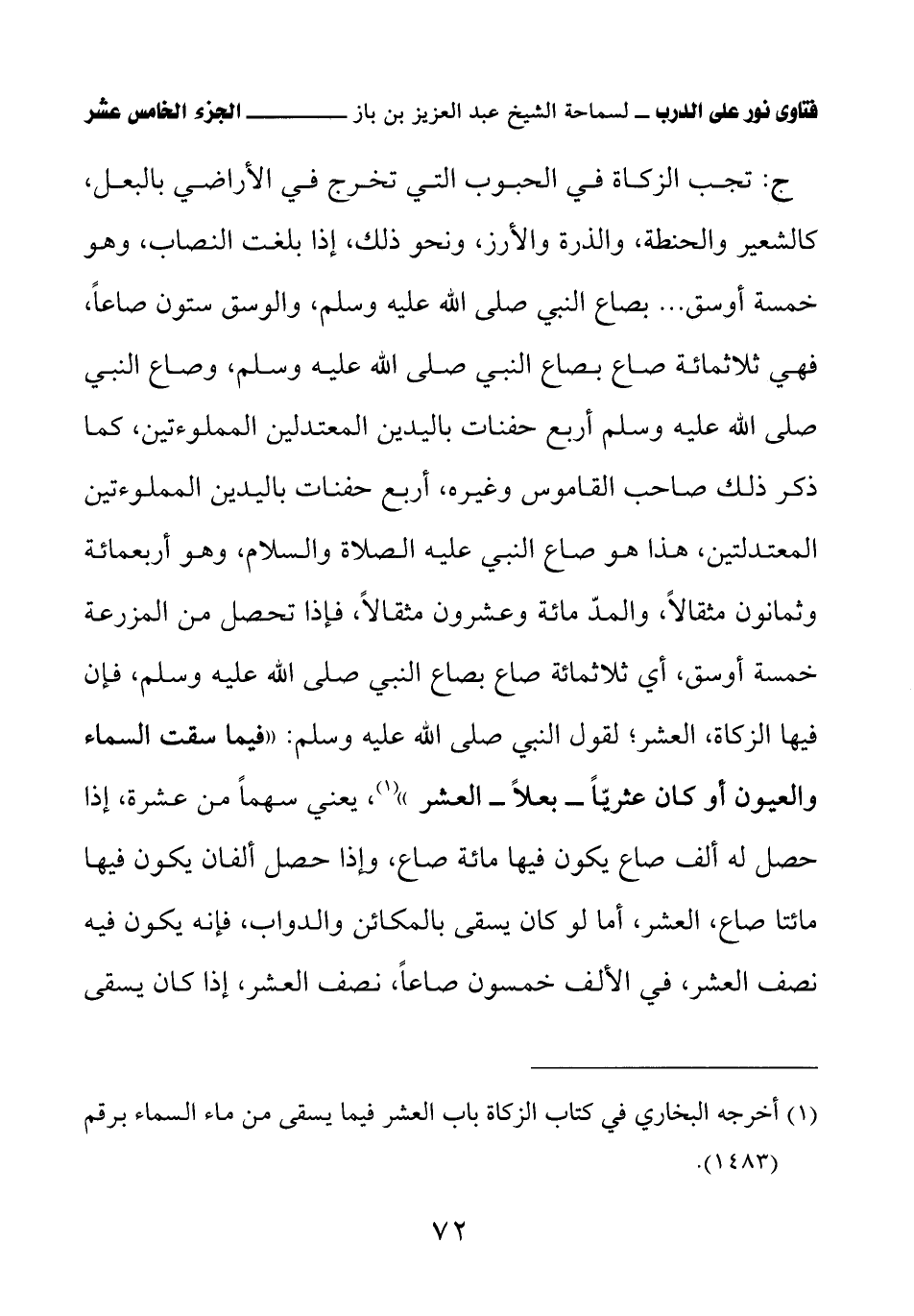 (¬1) أخرجه البخاري في كتاب الزكاة باب العشر فيما يسقى من ماء السماء برقم (1483).