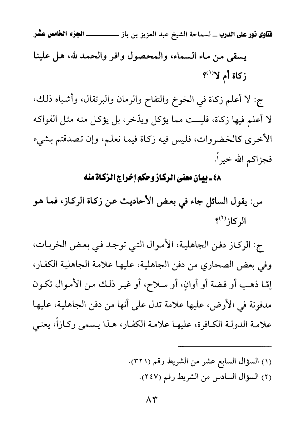 كتاب فتاوى نور على الدرب لابن باز بعناية الشويعر (اسم الجزء: 15)