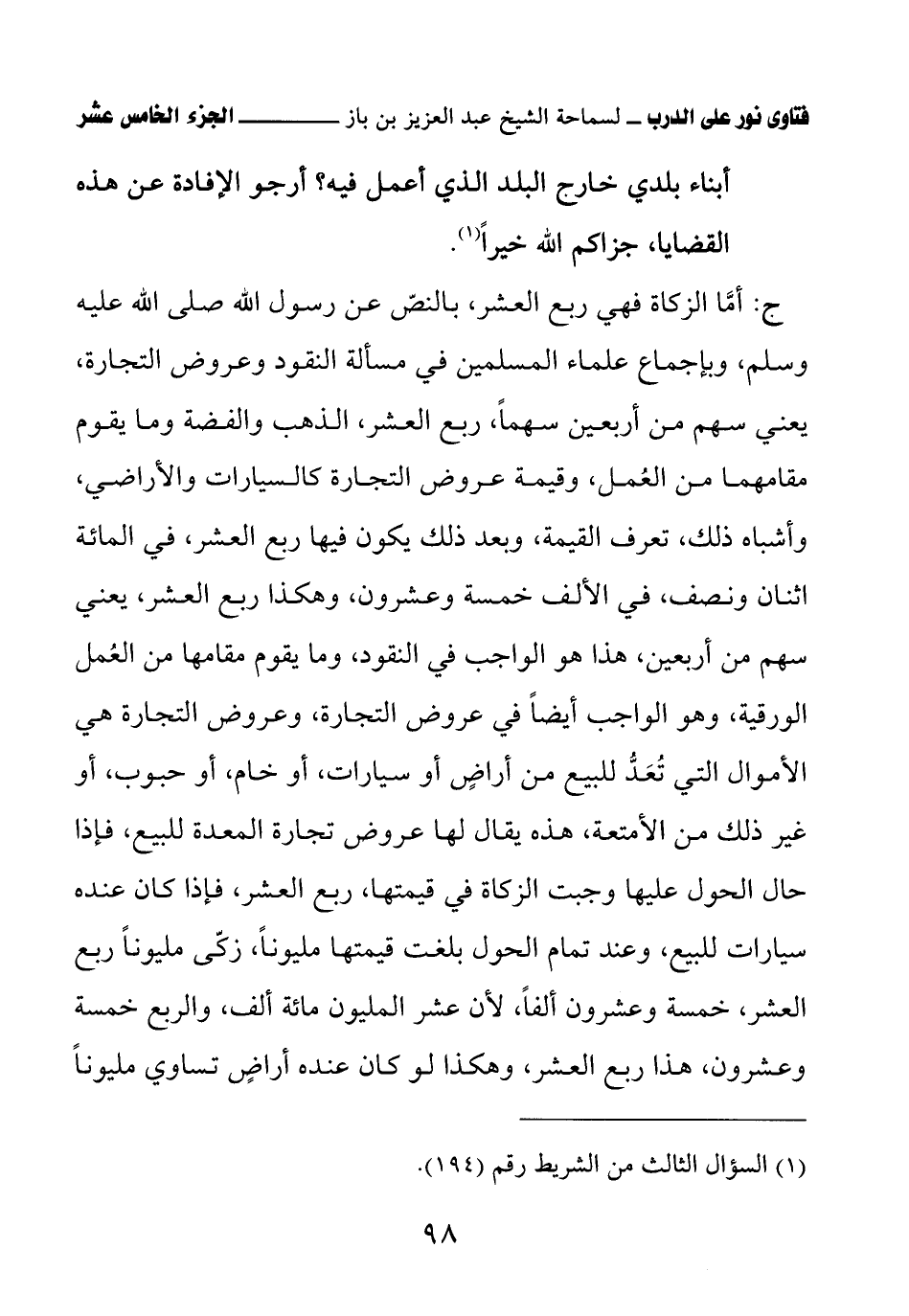 (¬1) السؤال الثالث من الشريط رقم (194).