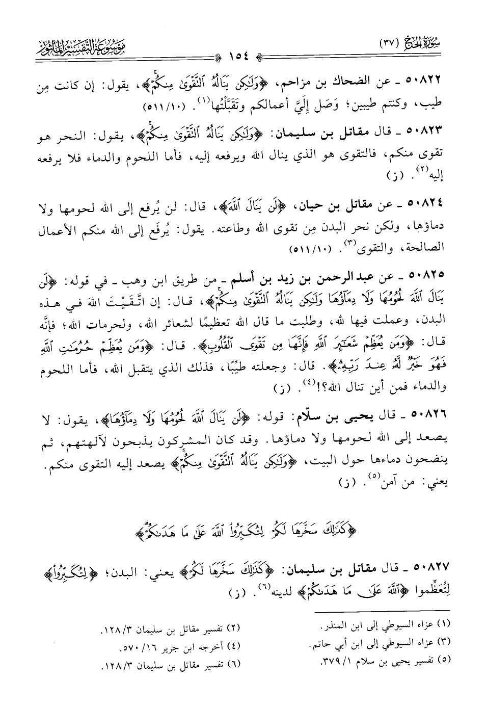 ٥٠٨٢٤ - عن مقاتل بن حيان، {لن ينال الله}، قال: لن يُرفع إلى الله لحومها ولا دماؤها، ولكن نحر البدن مِن تقوى الله وطاعته. يقول: يُرفَع إلى الله منكم الأعمال الصالحة، والتقوى (¬٣). (١٠/ ٥١١)