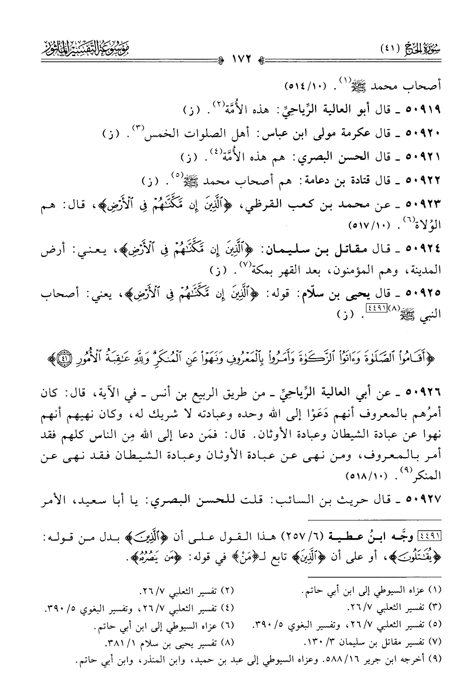 ٥٠٩٢٣ - عن محمد بن كعب القرظي، {الذين ان مكناهم في الأرض}، قال: هم الوُلاة (¬٦). (١٠/ ٥١٦)