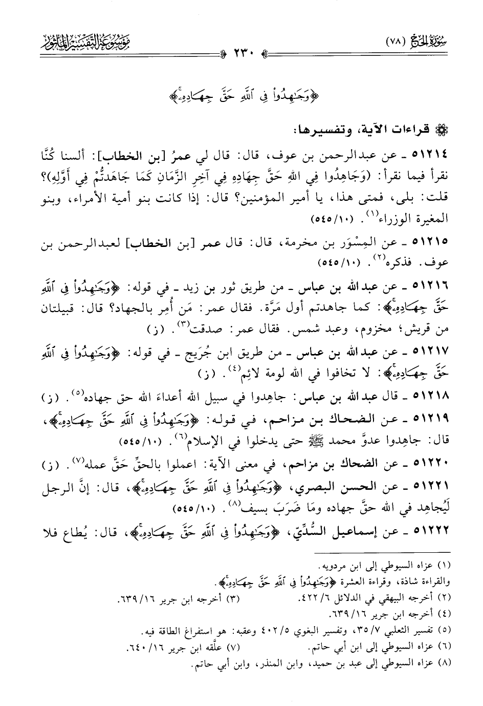٥١٢٢٢ - عن إسماعيل السُّدِّيّ، {وجاهِدُوا فِي اللَّهِ حَقَّ جِهادِهِ}، قال: يُطاع فلا
