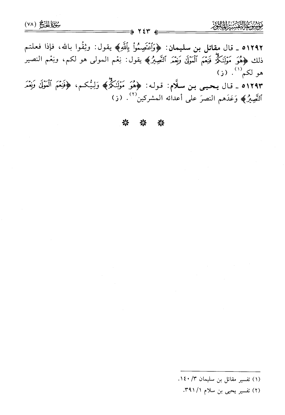 ٥١٢٩٢ - قال مقاتل بن سليمان: {واعتصموا بالله} يقول: وثِقُوا بالله، فإذا فعلتم ذلك {هو مولاكم فنعم المولى ونعم النصير} يقول: نِعْم المولى هو لكم، ونِعْم النصير هو لكم (¬١). (ز)