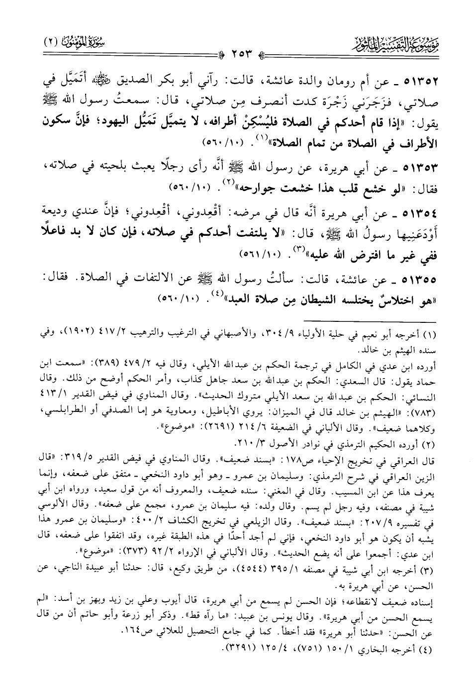 ٥١٣٥٣ - عن أبي هريرة، عن رسول الله - صلى الله عليه وسلم - أنّه رأى رجلًا يعبث بلحيته في صلاته، فقال: «لو خشع قلب هذا خشعت جوارحه» (¬٢). (١٠/ ٥٦٠)
