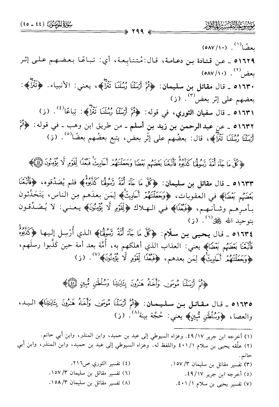 ٥١٦٣٠ - قال مقاتل بن سليمان: {ثم أرسلنا رسلنا تترا}، يعني: الأنبياء. {تترا}: بعضهم على إثر بعض (¬٣). (ز)