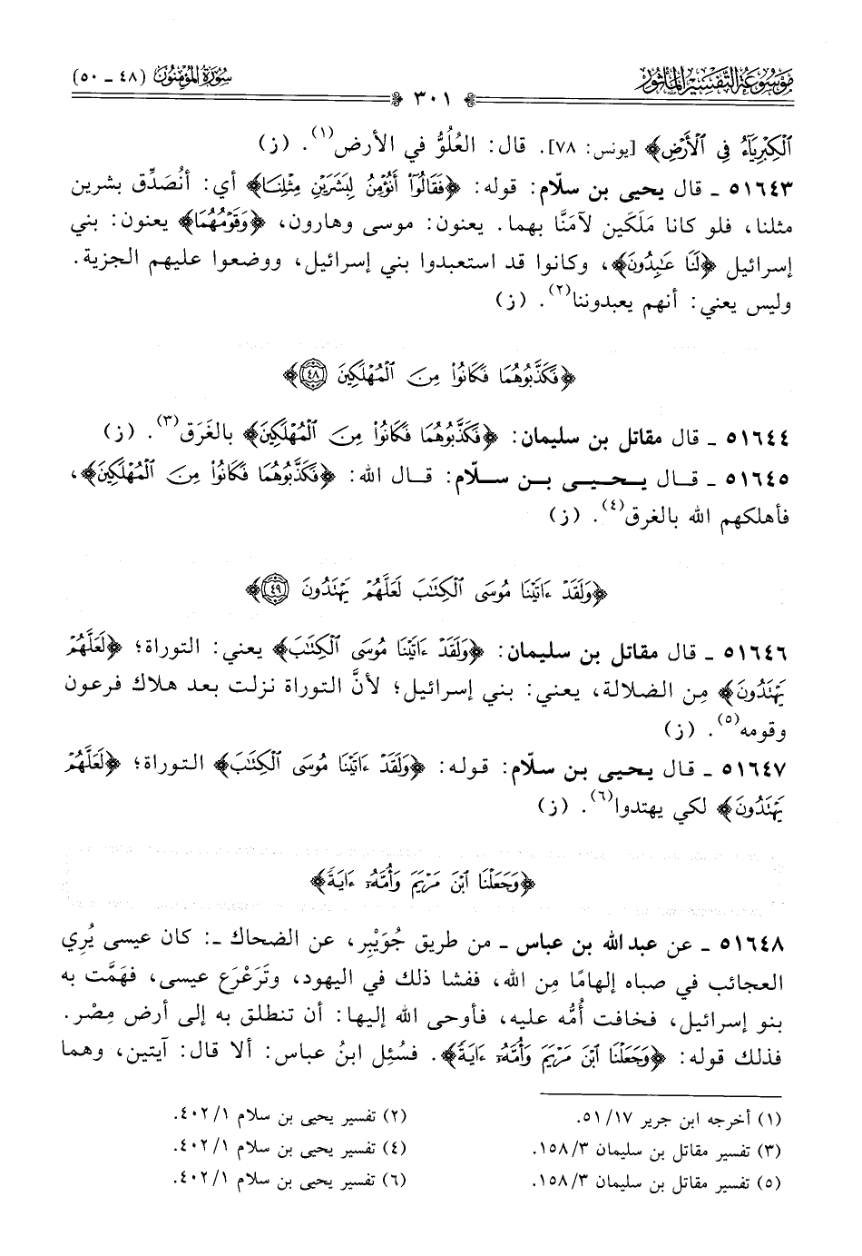 ٥١٦٤٧ - قال يحيى بن سلّام: قوله: {ولقد آتينا موسى الكتاب} التوراة؛ {لعلهم يهتدون} لكي يهتدوا (¬٦). (ز)