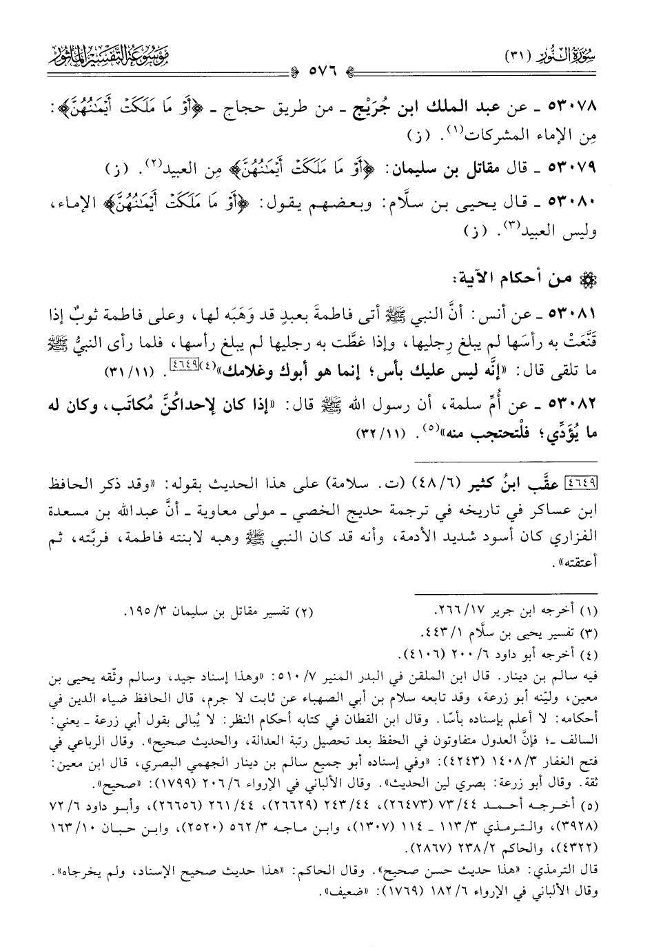 ٥٣٠٧٩ - قال مقاتل بن سليمان: {أو ما ملكت أيمانهن} مِن العبيد (¬٢). (ز)