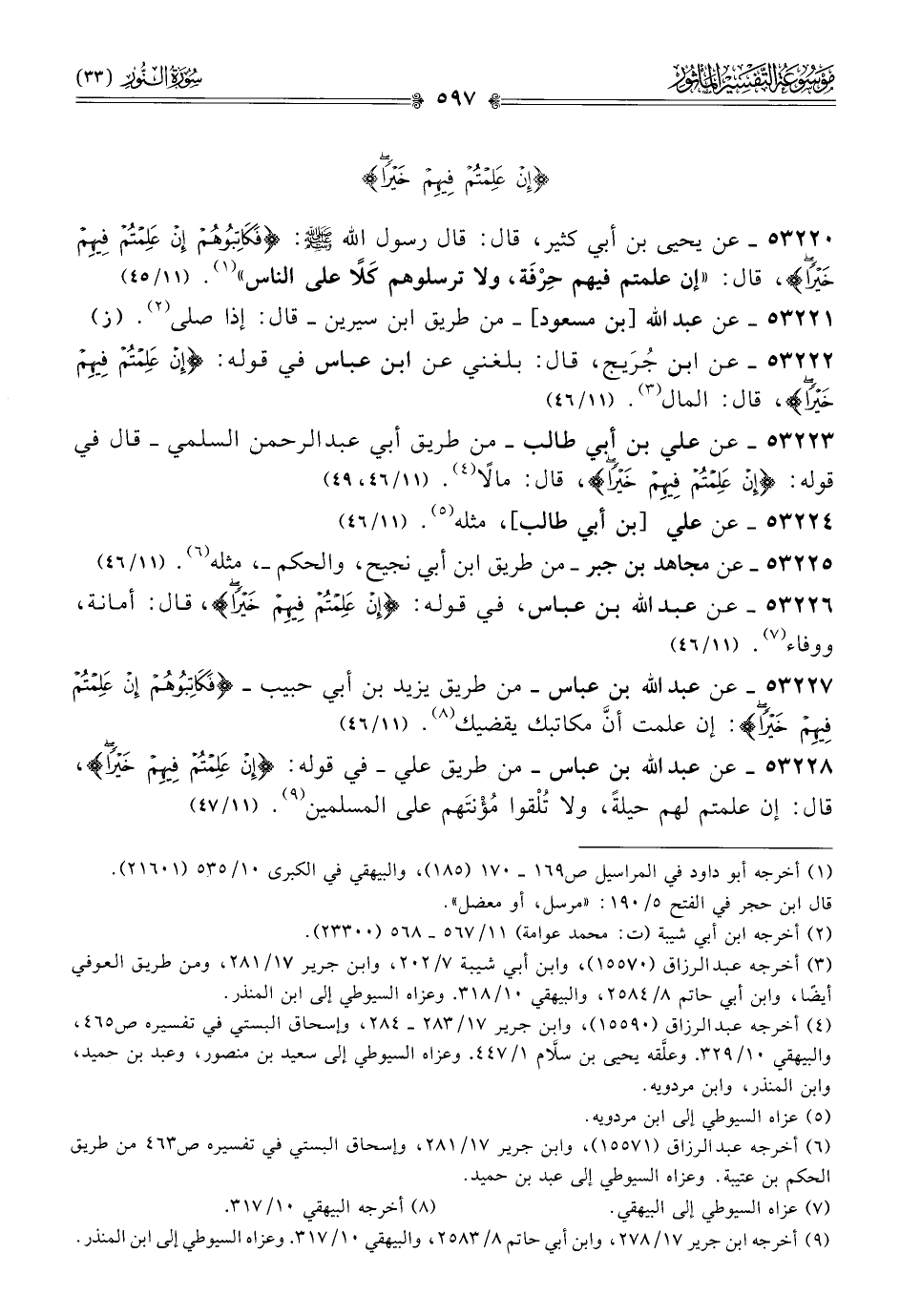 ٥٣٢٢٦ - عن عبد الله بن عباس، في قوله: {إن علمتم فيهم خيرا}، قال: أمانة، ووفاء (¬٧). (١١/ ٤٦)