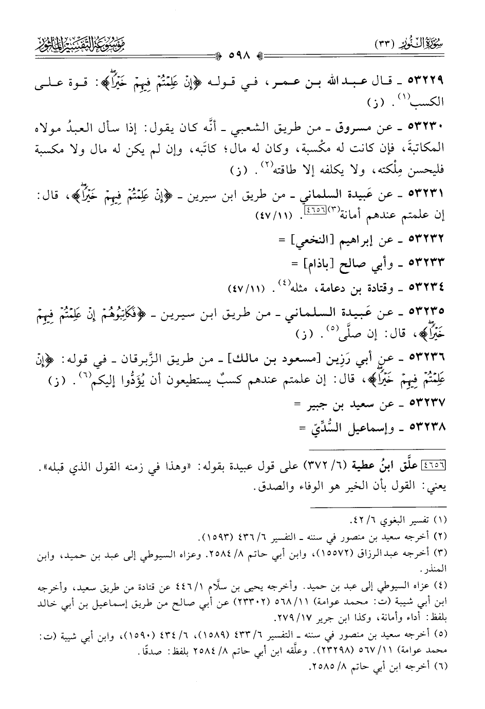 ٥٣٢٣٥ - عن عَبيدة السلماني -من طريق ابن سيرين- {فكاتبوهم إن علمتهم فيهم خيرًا}، قال: إن صلّى (¬٥). (ز)