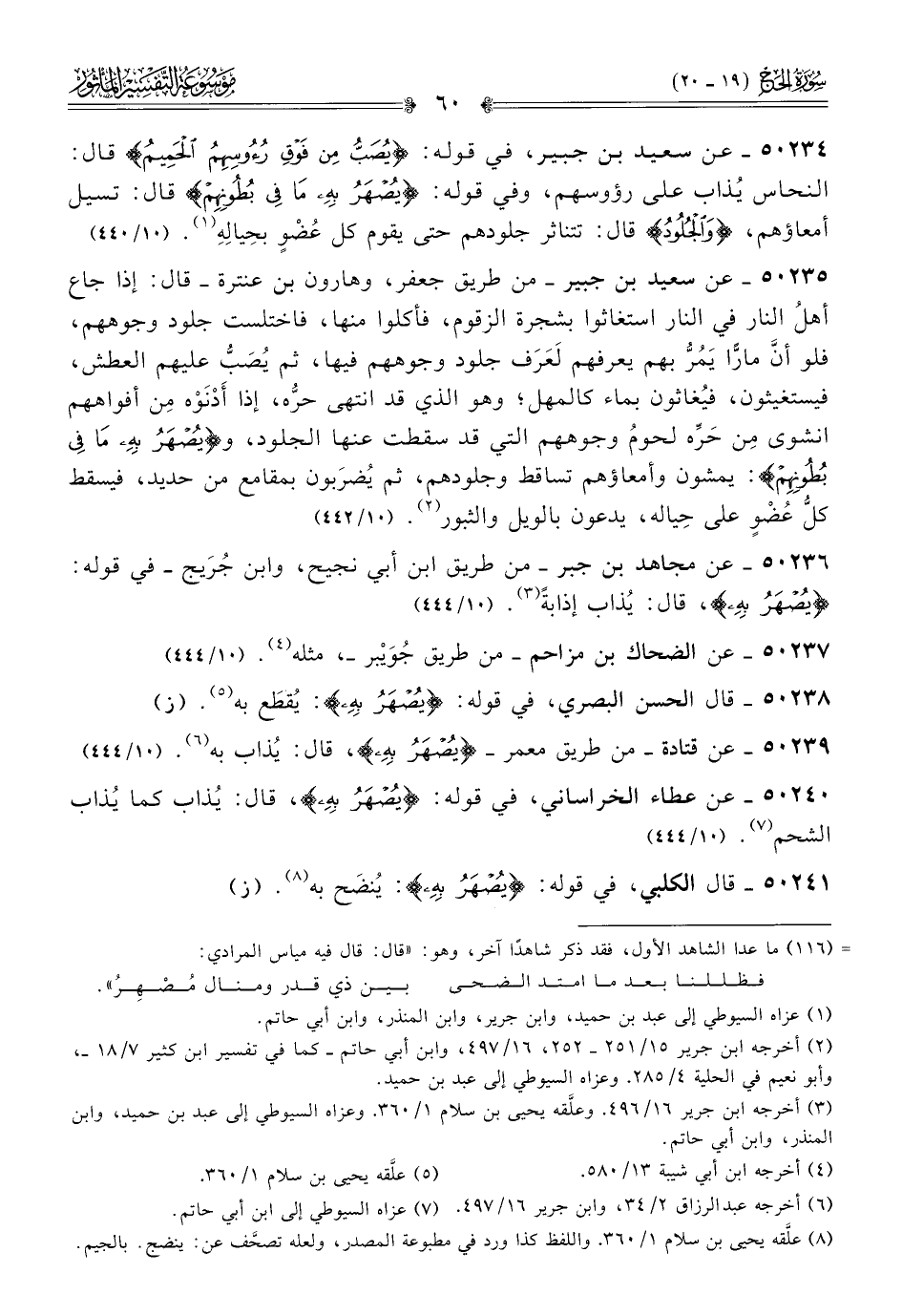 ٥٠٢٣٨ - قال الحسن البصري، في قوله: {يصهر به}: يُقطَع به (¬٥). (ز)