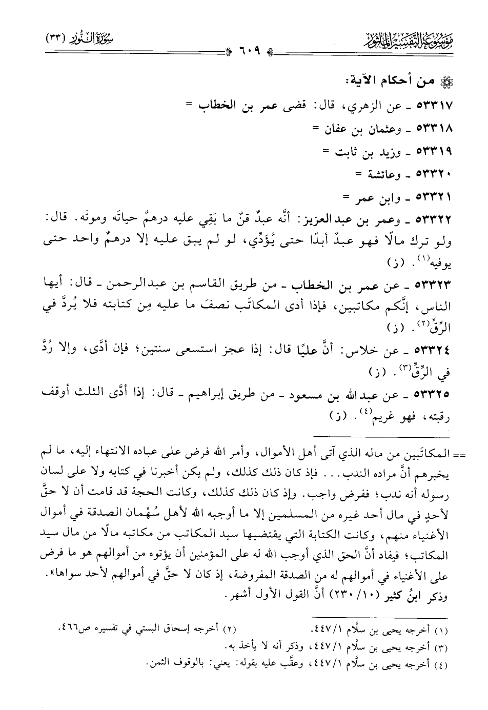 ٥٣٣٢٥ - عن عبد الله بن مسعود -من طريق إبراهيم- قال: إذا أدّى الثلث أوقف رقبته، فهو غريم (¬٤). (ز)