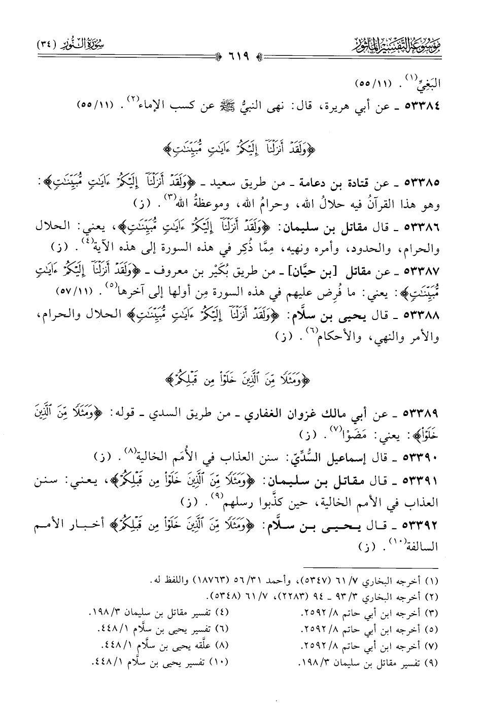 ٥٣٣٨٧ - عن مقاتل [بن حيّان]-من طريق بُكَيْر بن معروف- {ولقد أنزلنا اليكم آيات مبينات}: يعني: ما فُرِض عليهم في هذه السورة مِن أولها إلى آخرها (¬٥). (١١/ ٥٧)