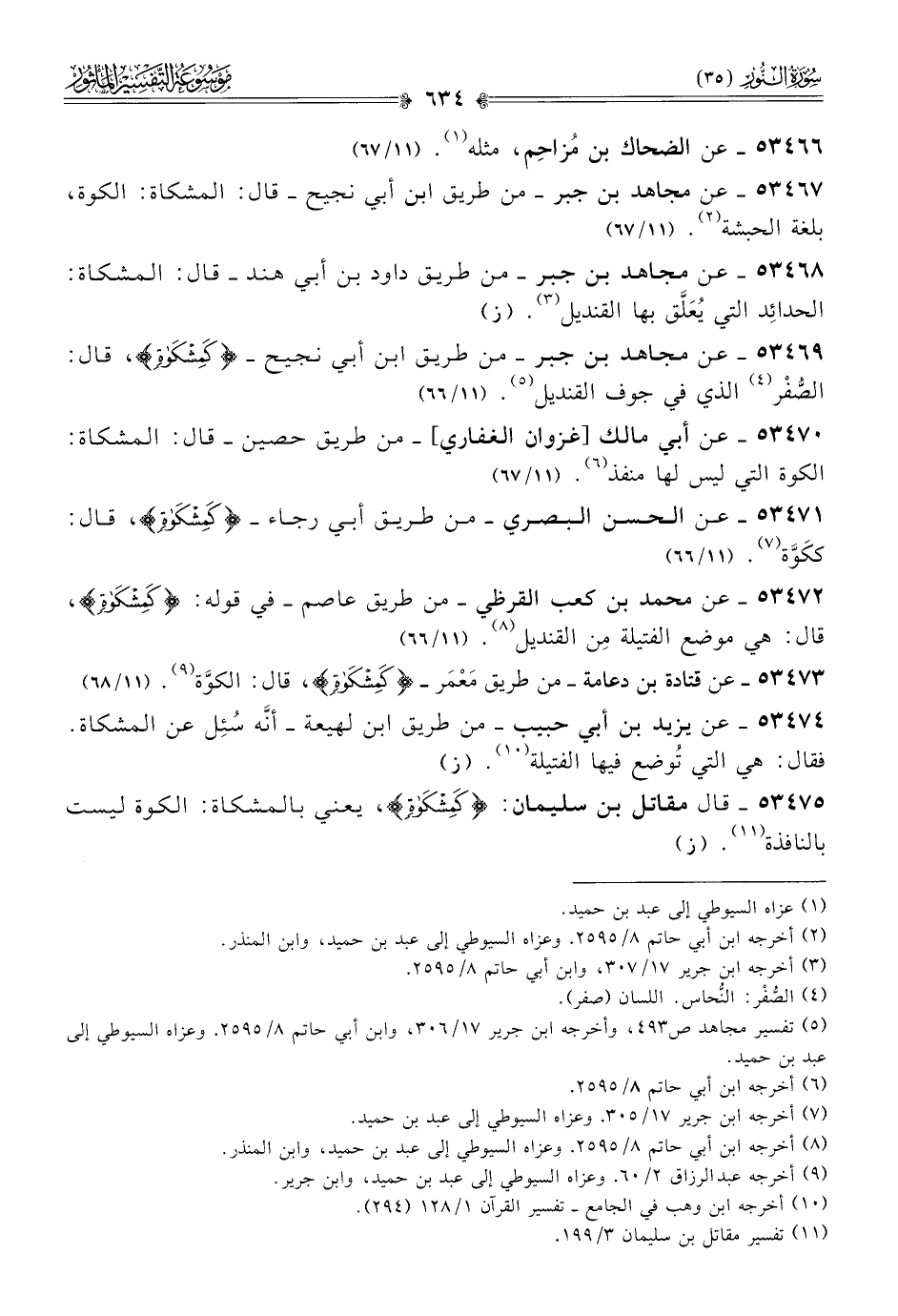 ٥٣٤٦٨ - عن مجاهد بن جبر -من طريق داود بن أبي هند- قال: المشكاة: الحدائِد التي يُعَلَّق بها القنديل (¬٣). (ز)