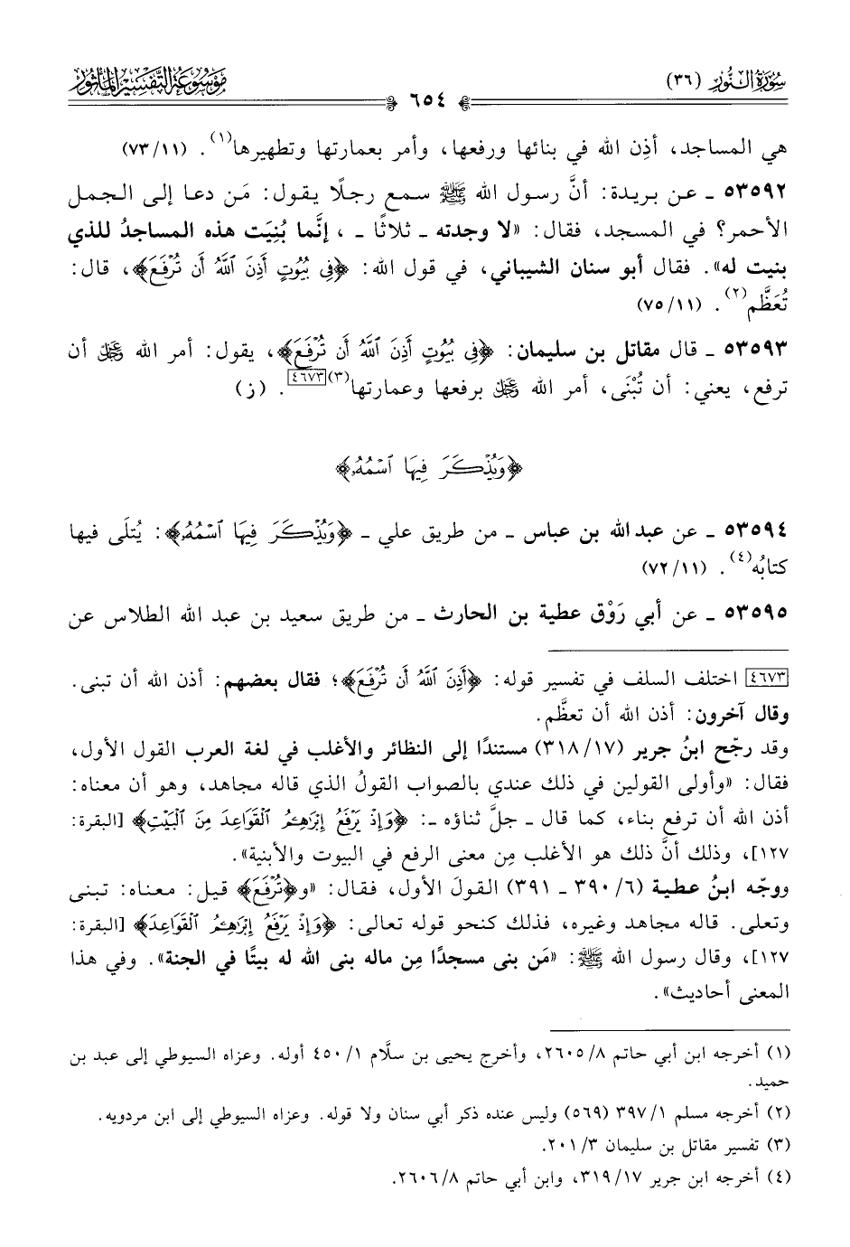 ٥٣٥٩٣ - قال مقاتل بن سليمان: {في بيوت أذن الله أن ترفع}، يقول: أمر الله - عز وجل - أن ترفع، يعني: أن تُبْنى، أمر الله - عز وجل - برفعها وعمارتها (¬٣) [٤٦٧٣]. (ز)