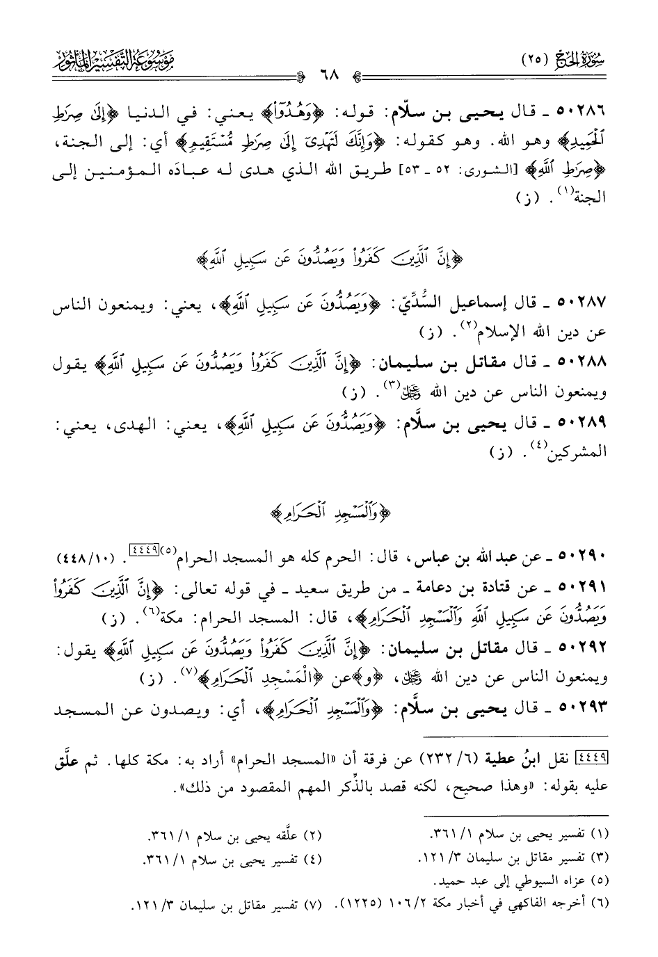 ٥٠٢٩٣ - قال يحيى بن سلّام: {والمسجد الحرام}، أي: ويصدون عن المسجد