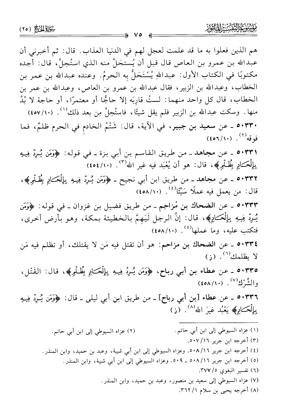 ٥٠٣٣٥ - عن عطاء بن أبي رباح، {ومن يرد فيه بإلحاد بظلم}، قال: القَتْل، والشِّرْك (¬٧). (١٠/ ٤٥٨)