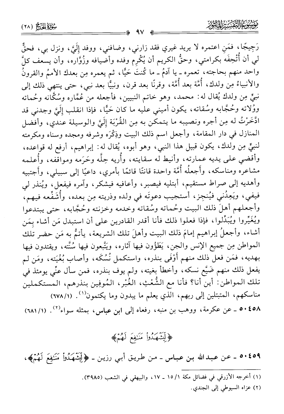 ٥٠٤٥٩ - عن عبد الله بن عباس -من طريق أبي رزين- {ليشهدوا منافع لهم}،