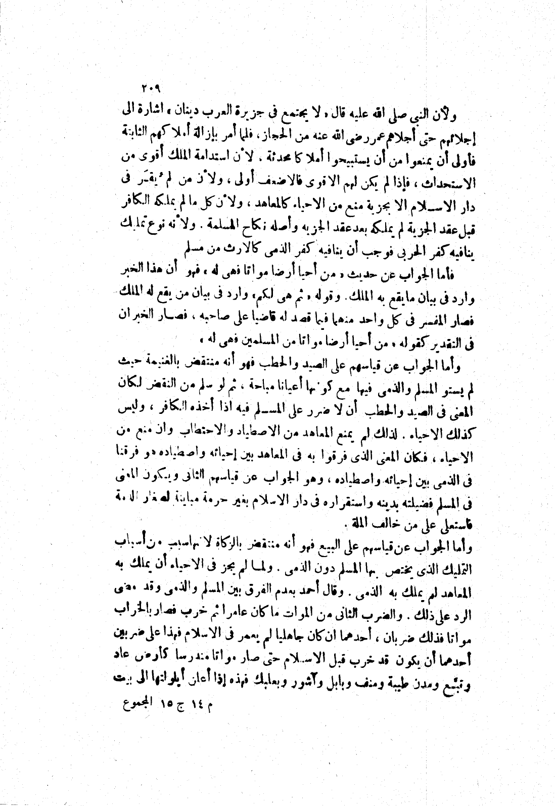 وأما الجواب عن قياسهم على البيع فهو إنه منتقض بالزكاة لانها سبب من أسباب التمليك الذى يختص بها المسلم دون الذمي.