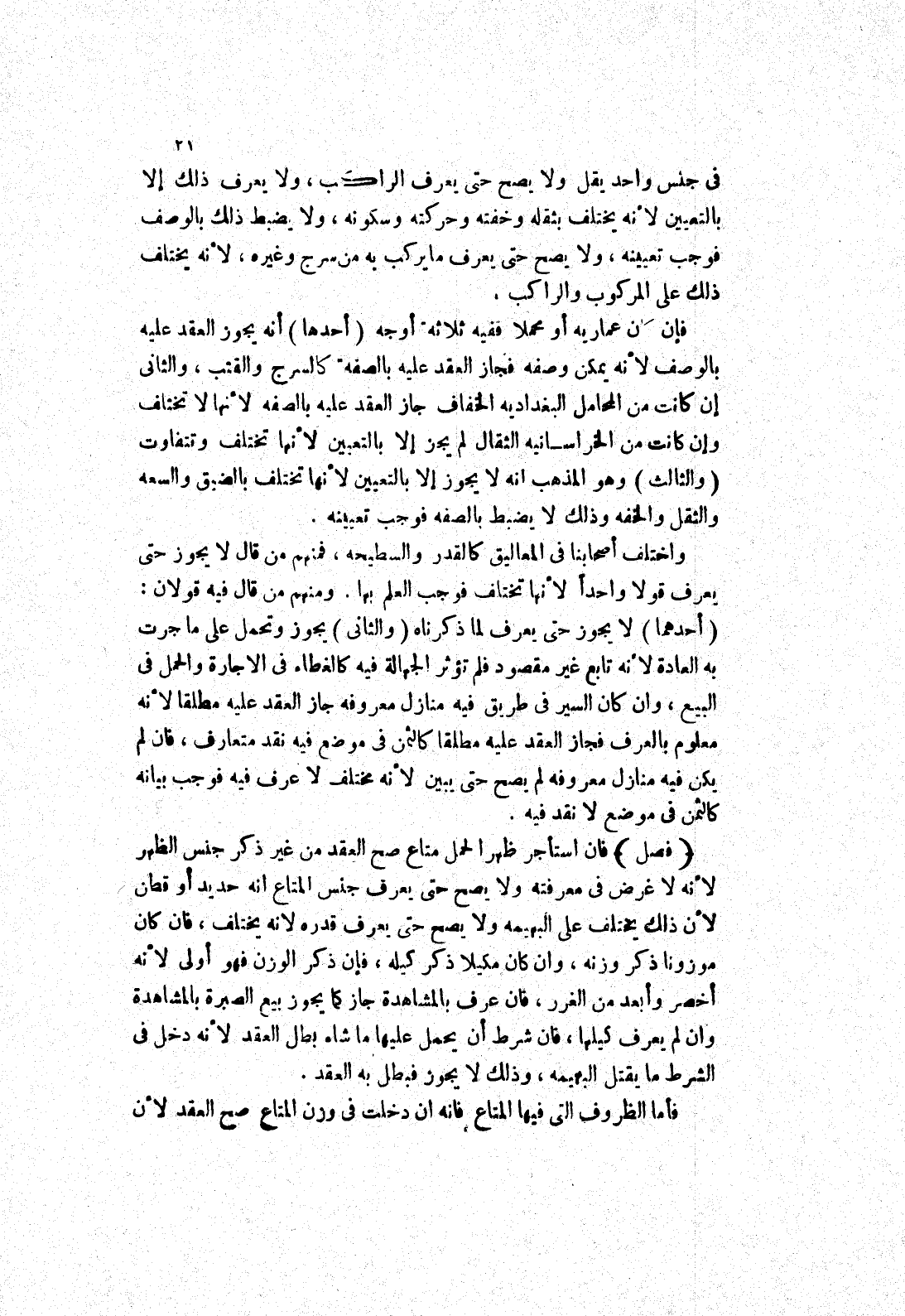 فإن كان عماريه أو محملا ففيه ثلاثة أوجه (أحدها) أنه يجوز العقد عليه بالوصف لانه يمكن وصفه فجاز العقد عليه بالصفة كالسرج والقتب، والثانى إن كانت من المحامل البغدادية الخفاف جاز العقد عليه بالصفة لانها لا تختلف وإن كانت من الخراسانيه الثقال لم يجز إلا بالتعيين لانها تختلف وتتفاوت