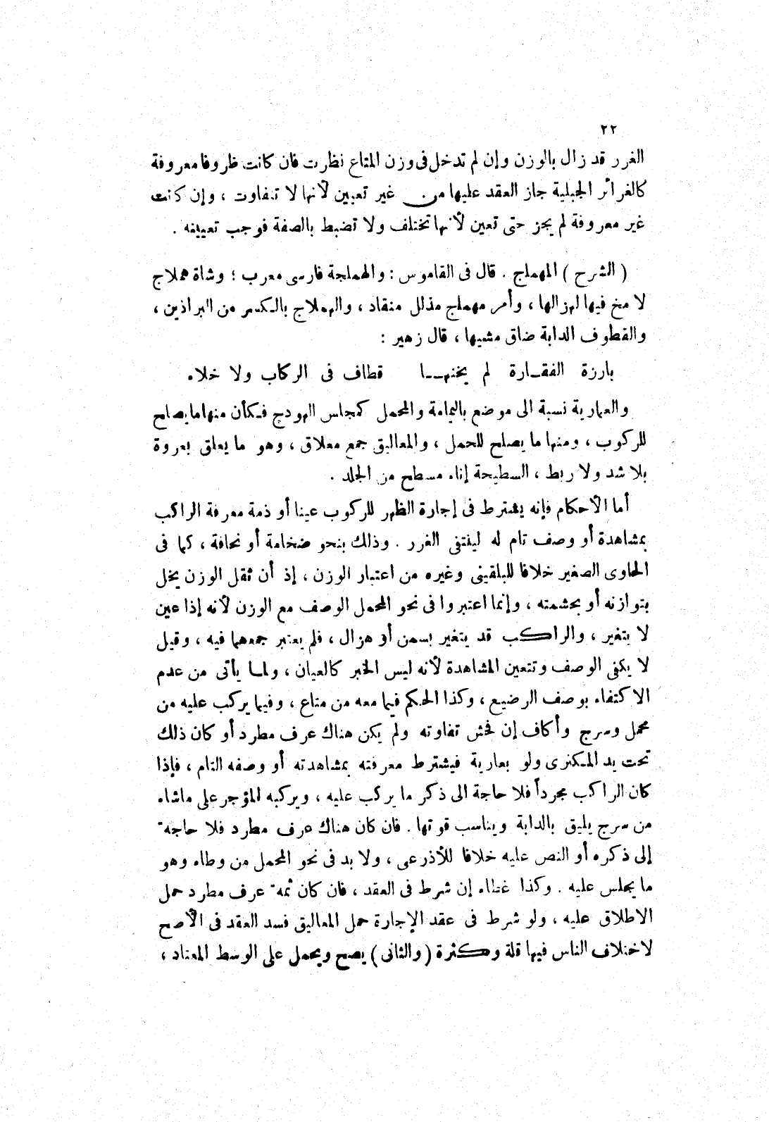 قال في القاموس: والهملجة فارسي معرب، وشاة هملاج لا مخ فيها لهزالها، وأمر مهملج مذلل منقاد، والهملاج بالكسر من البراذين، والقطوف الدابة ضاق مشيها، قال زهير: بارزة الفقارة لم يخنها قطاف في الركاب ولا خلاء والعمارية نسبة إلى موضع باليمامة والمحمل كمجلس الهودج فكأن منها ما يصلح للركوب، ومنها ما يصلح للحمل، والمعاليق جميع معلاق، وهو ما يعلق بعروة بلا شد ولا ربط، والسطيحة إناء مسطح من الجلد.