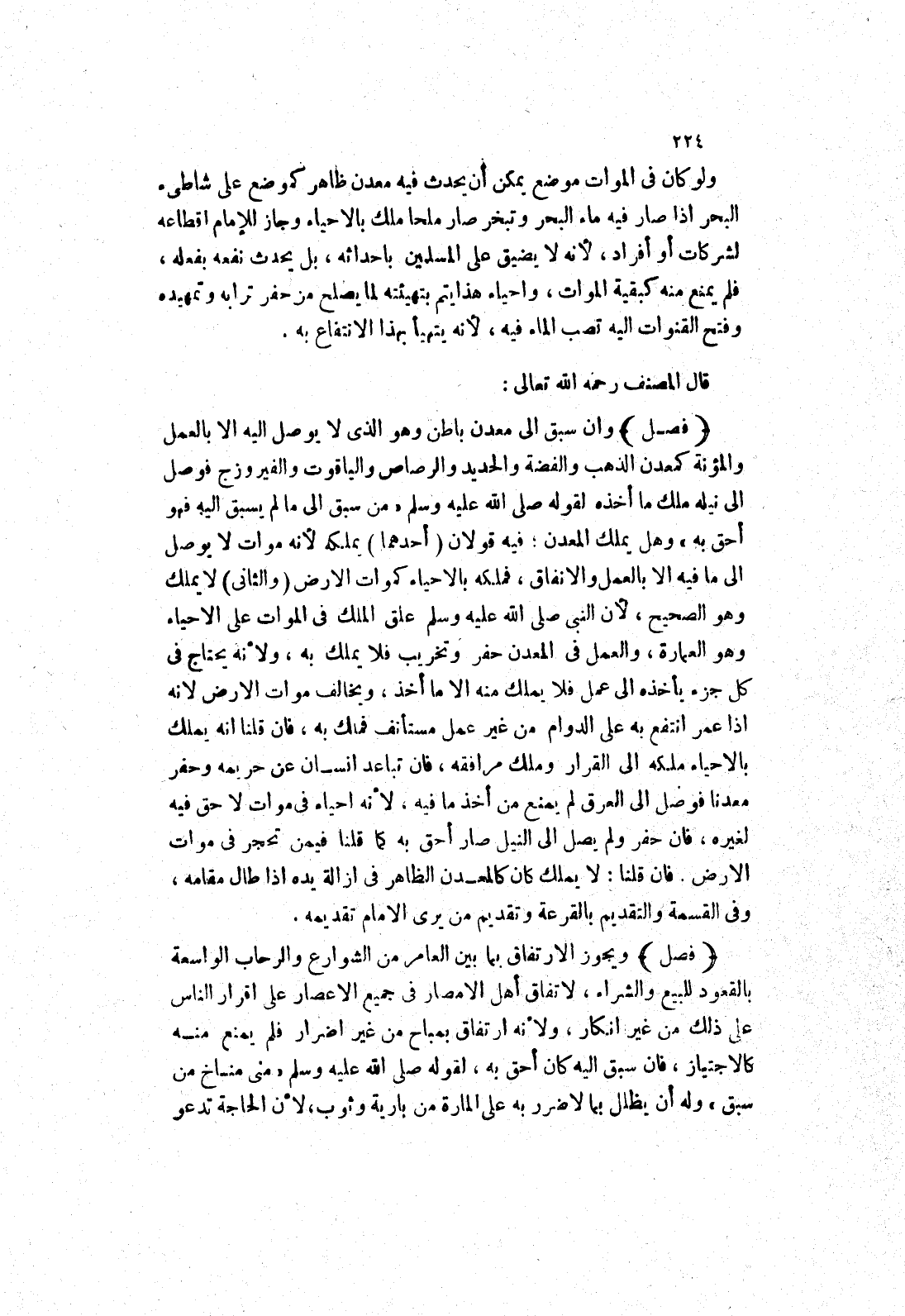ولو كان في الموات موضع يمكن أن يحدث فيه معدن ظاهر كموضع على شاطئ البحر إذا صار فيه ماء البحر وتبخر صار ملحا ملك بالاحياء وجاز للامام اقطاعه لشركات أو أفراد، لانه لا يضيق على المسلمين باحداثه، بل يحدث نفعه بفعله، فلم يمنع منه كبقية الموات، واحياء هذا يتم بتهيئته لما يصلح من حفر ترابه وتمهيده وفتح القنوات إليه تصب الماء فيه، لانه يتهيأ بهذا الانتفاع به،