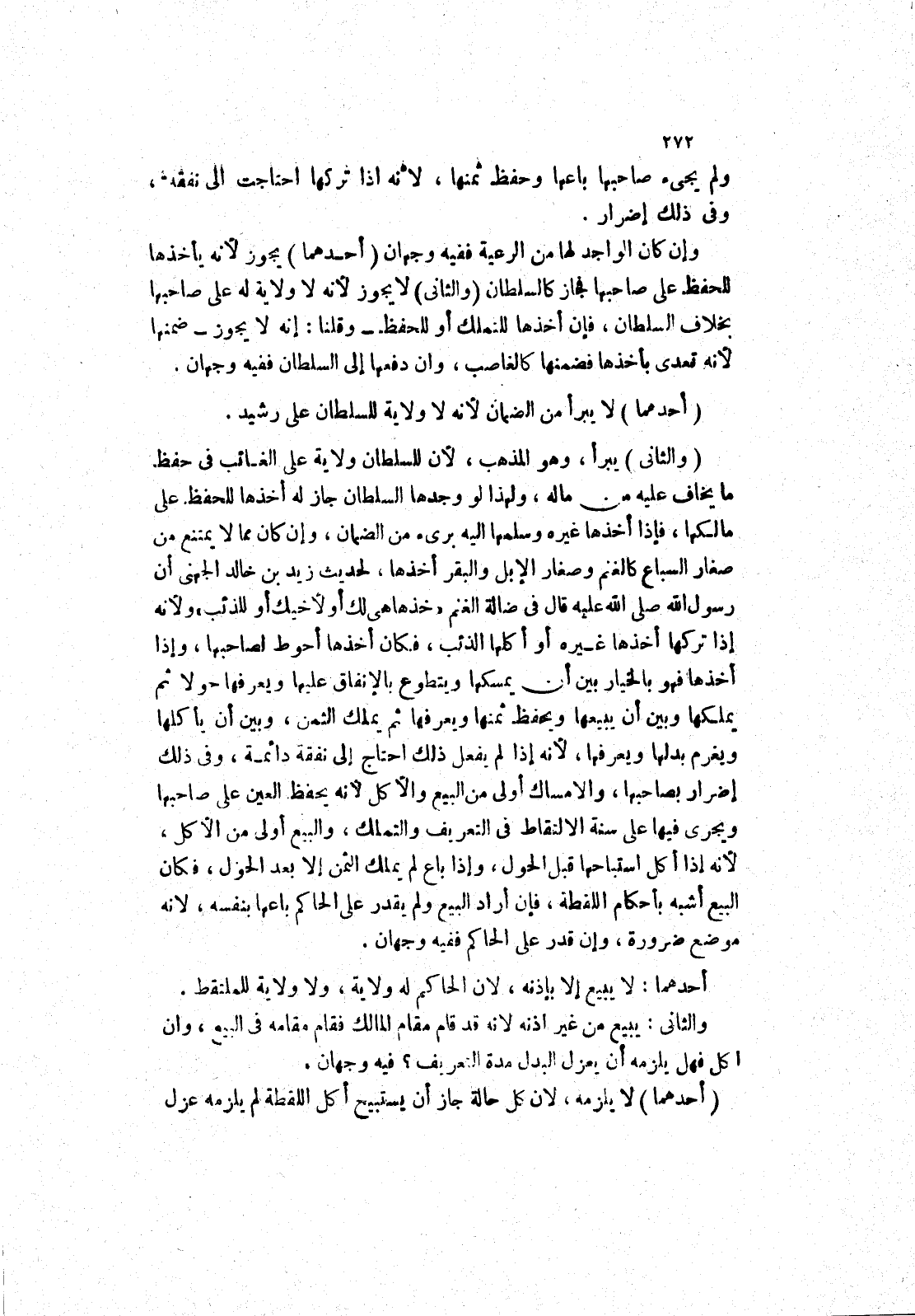 يبرأ، وهو المذهب، لان للسلطان ولاية على الغائب في حفظ ما يخاف عليه من ماله، ولهذا لو وجدها السلطان جاز له أخذها للحفظ على مالكها، فإذا أخذها غيره وسلمها إليه برئ من الضمان، وإن كان مما لا يمتنع من صغار السباع كالغنم وصغار الابل والبقر أخذها، لحديث زيد بن خالد الْجُهَنِيِّ أَنَّ رَسُولَ اللَّهِ صَلَّى اللَّهُ عَلَيْهِ قال في ضالة الغنم (خذها هي لك أو لاخيك أو للذئب) ولانه إذا تركها أخذها غيره أو أكلها الذئب، فكان أخذها أحوط لصاحبها، وإذا أخذها فهو بالخيار بين أن يمسكها ويتطوع بالانفاق عليها ويعرفها حولا ثم يملكها وبين ان يبيعها ويحفظ ثمنها ويعرفها ثم يملك الثمن، وبين أن يأكلها ويغرم بدلها ويعرفها، لانه إذا لم يفعل ذلك احتاج إلى نفقة دائمه، وفى ذلك إضرار بصاحبها، والامساك أولى من البيع والاكل لانه يحفظ العين على صاحبها ويجرى فيها على سنة الالتقاط في التعريف والتملك، والبيع أولى من الاكل، لانه إذا أكل استباحها قبل الحول، وإذا باع لم يملك الثمن إلا بعد الحول، فكان البيع أشبه بأحكام اللقطة، فإن أراد البيع ولم يقدر على الحاكم باعها بنفسه، لانه موضع ضرورة، وإن قدر على الحاكم ففيه وجهان.