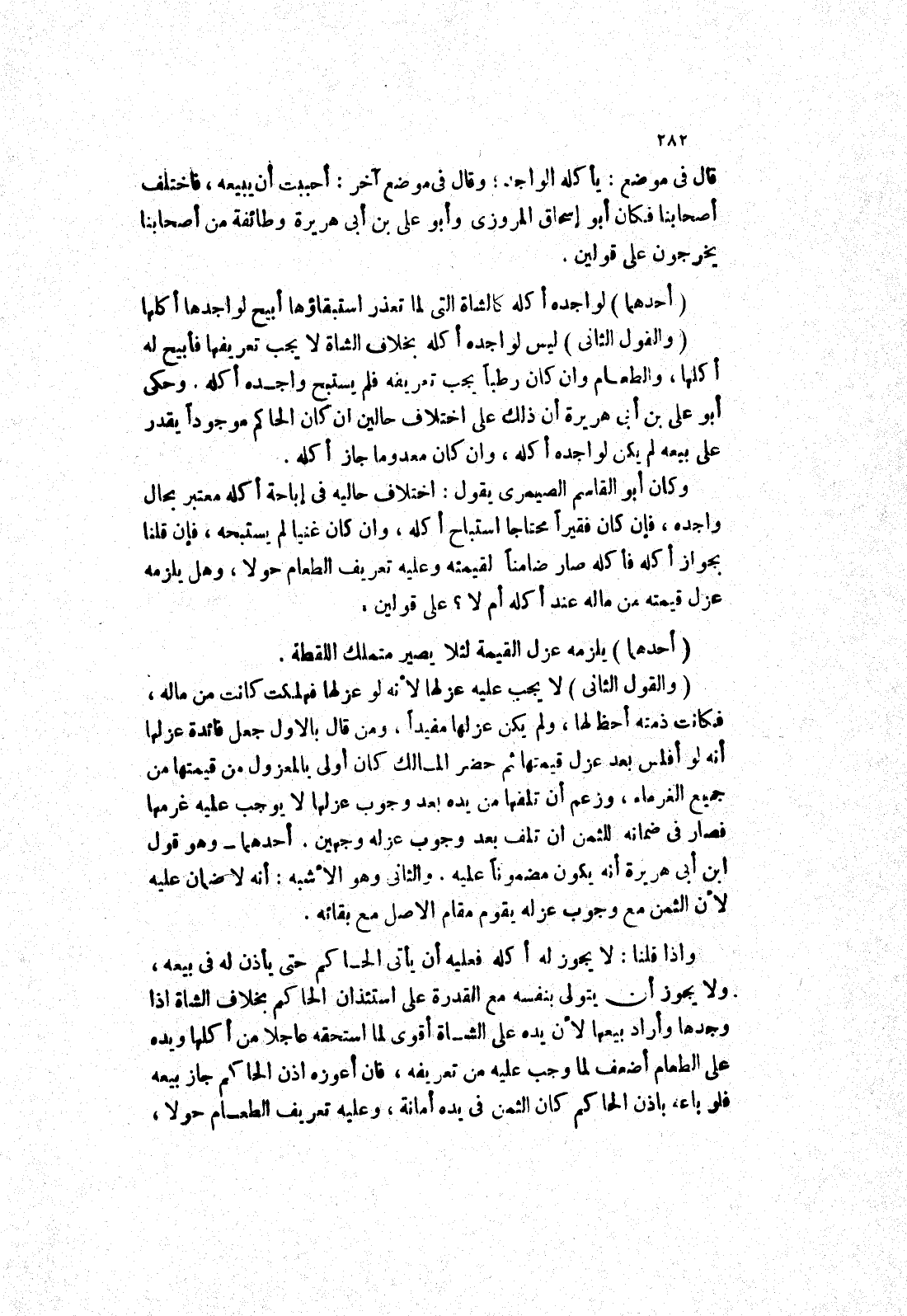قال في موضع: يألكه الواجد، وقال في موضع آخر: أحببت أن يبيعه، فاختلف أصحابنا فكان أَبُو إِسْحَاقَ الْمَرْوَزِيُّ وَأَبُو عَلِيِّ بْنُ أَبِي هريرة وطائفة من أصحابنا يخرجون على قولين.