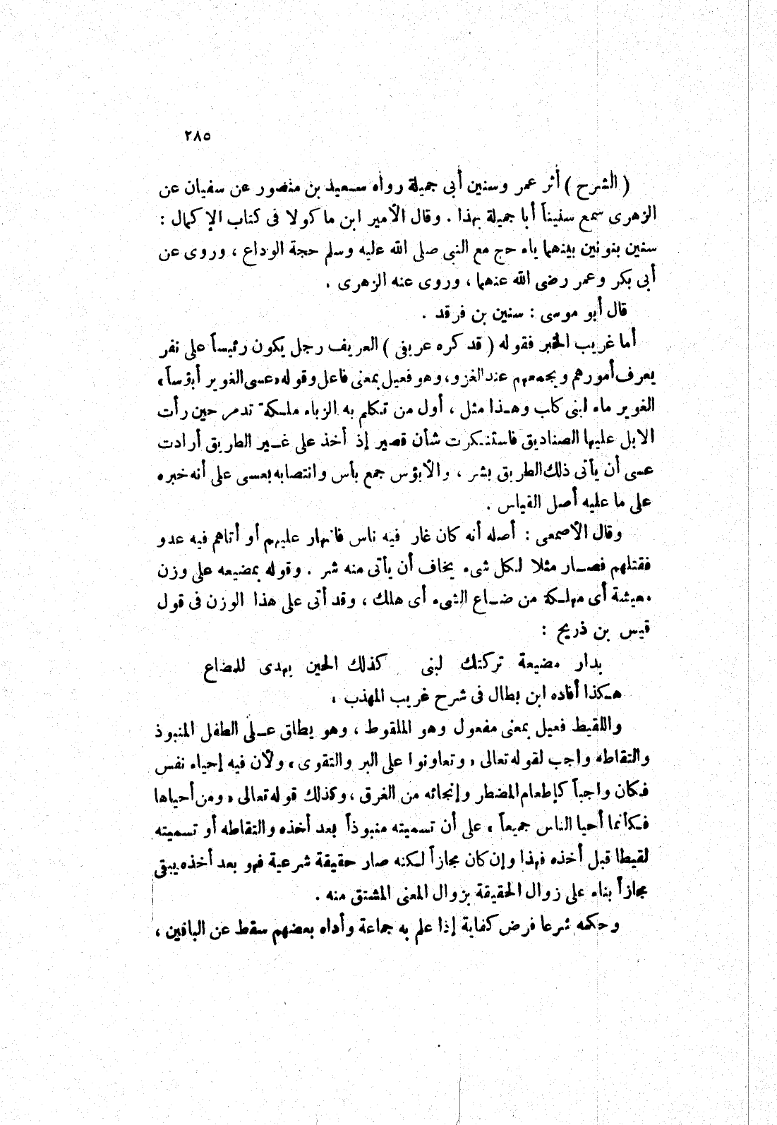 أما غريب الخبر فقوله (قد كره عريفي) العريف رجل يكون رئيسا على نفر يعرف أمورهم ويجمعهم عند الغزو، وهو فعيل بمعنى فاعل وقوله (عسى الغوير أبؤسا) الغوير ماء لبنى كلب وهذا مثل، أول من تكلم به الزباء ملكة تدمر حين رأت الابل عليها الصناديق فاستنكرت شأن قصير إذ أخذ على غير الطريق أرادت عسى أن يأتي بذلك الطريق بشر، والابؤس جمع بأس وانتصابه بعسى على أنه خبره على ما عليه أصل القياس.